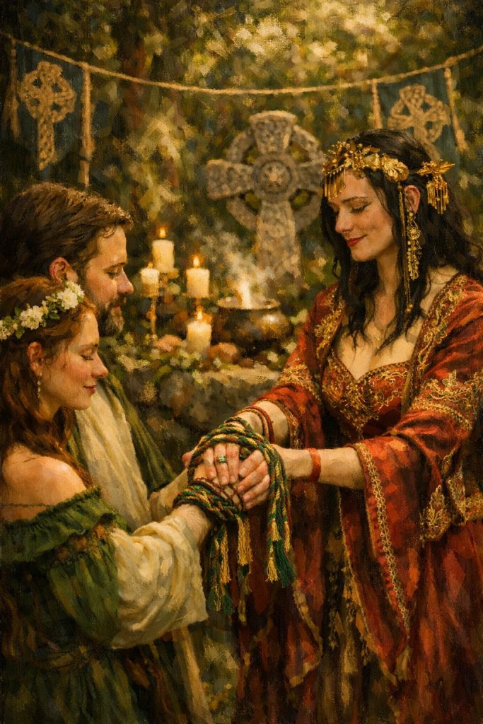 Handfasting is geen huwelijk in juridische zin, maar een persoonlijk en betekenisvol moment. Het kan staan voor liefde, partnerschap, hernieuwde verbinding of een gedeelde weg die samen wordt gekozen. Elke handfasting is uniek en wordt met zorg afgestemd op het stel.