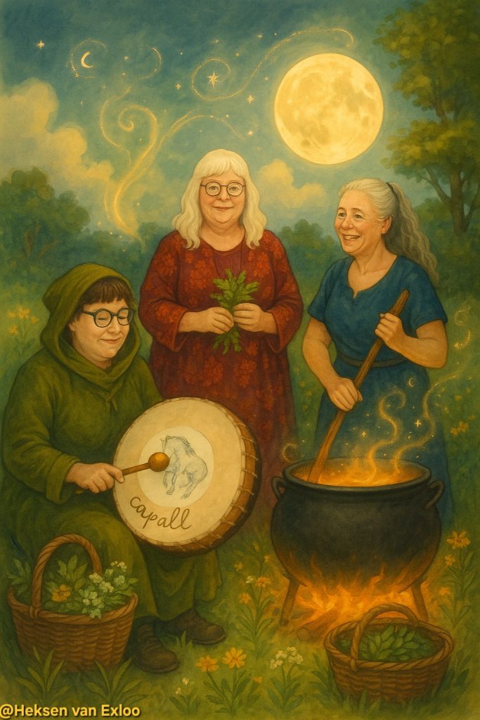 Een paar weken later, tijdens een drumsessie bij het vuur, sloeg de trom nog dieper. Het ritme bracht woorden naar boven die lang stil waren geweest. De eerste heks vertelde aan een derde: