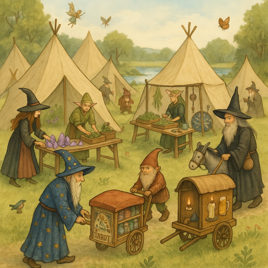 🔮 Standhouders die producten aanbieden die passen bij een heksenmarkt, zoals: